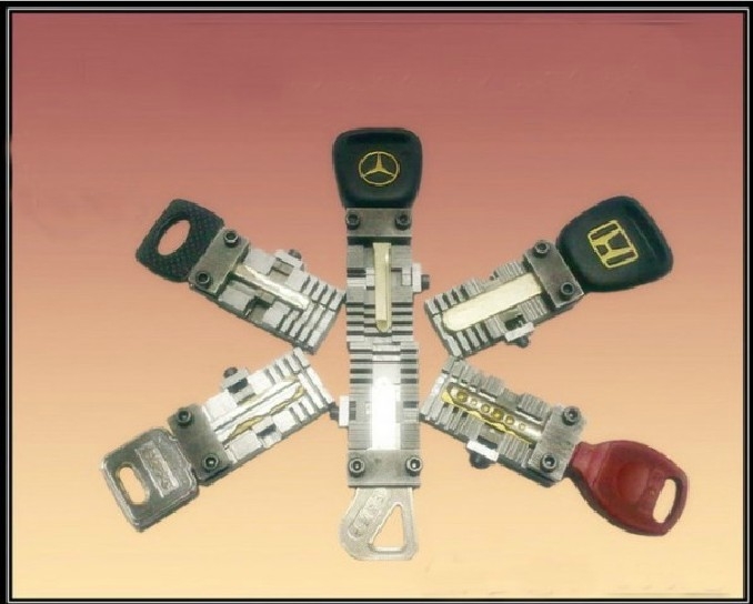 那么关于立式机器的辅助夹具的功效大家也应该有所了解啦。一般尤其是现在配制侧铣钥匙如本田,奔驰,福克斯等车匙类,使用原装机器夹具的话,原装夹具高度基本和钥匙厚度相当,不小心就会出现铣刀伤及夹具,造成不可逆转的永久性伤害;尤其是中高端机型,对于店主来讲更是伤心;那么现在市场上琳琅满目的各类钥匙,有些是需要额外夹持才能配制,就需要一种类似万能夹具去配制。那么这个辅助夹具就是一个合格锁匠很好的硬件技术保障;