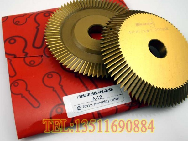 刀片直径70mm,刀片厚度7.3mm,中心孔直径12.7mm(80齿),经过一整套加工工艺和热处理,并全部镀钛。硬度达到65HRC以上;80属于精细密齿性,精细配制各类铜材质钥匙的操作;中心孔12.7mm通用于各类型双头卧式配钥匙机器。