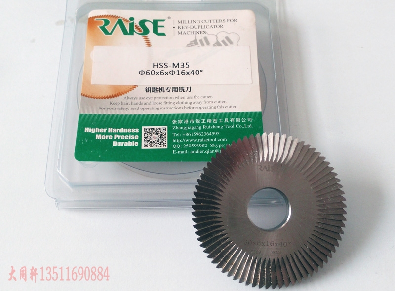 RAISE牌钥匙机专用刀具一经推出便深受锁匠师傅们欢迎。RAISE系列立铣刀,平铣刀和钻孔刀选用进口硬质合金(钨钢),刃口经纳米涂层处理,硬度高,加工光洁度好,更精准、更耐用。