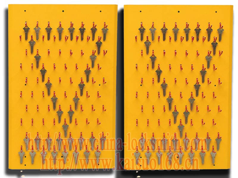 销售精准原厂最新上市销售的钥匙挂牌;规格60X40 cm;整块全不锈钢喷漆制作;是专业配钥匙店铺柜台,墙面等展示各类规格型号匙胚的专业展示牌。该展牌一改以往固定卡扣,改由活结式样卡扣,更加适合安装拆卸以及运输的方便;