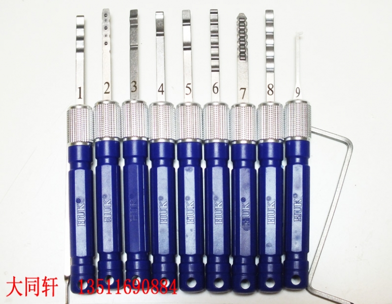 HUK推出的一款9件装平板波浪刷钩;也就是我们早期称之为“搓衣板单钩”的一种开启外装锁芯的电脑锁的工具;也通知能开启平板类电子柜打孔电脑锁,都有上佳的表现;